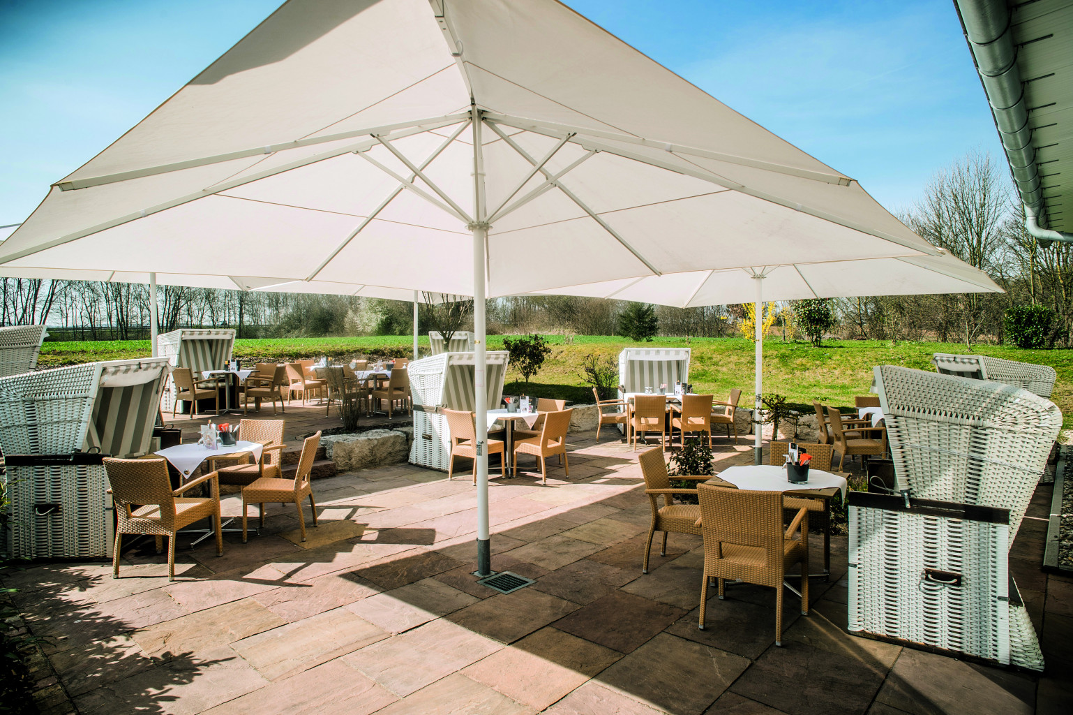 Unsere Außenterrasse ist bei schönem Wetter geöffnet. Hier fühlen Sie einen Hauch von Sylt mit den original stilechten Strandkörben.